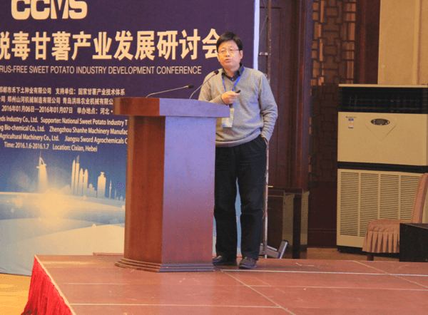 2016年1月7日上午,由邯鄲市禾下土種業(yè)有限公司主辦的第三屆中原脫毒甘薯產業(yè)發(fā)展研討會在河北省磁縣溢泉湖嵩景樓國際會議中心隆重召開。會議上,國家甘薯產業(yè)技術體系崗位科學家、河南省農科院植保所所長張振臣發(fā)表《甘薯病毒病的識別及綜合防控技術》專題演講,對甘薯病毒病的防控策略及防控技術做了詳細介紹。