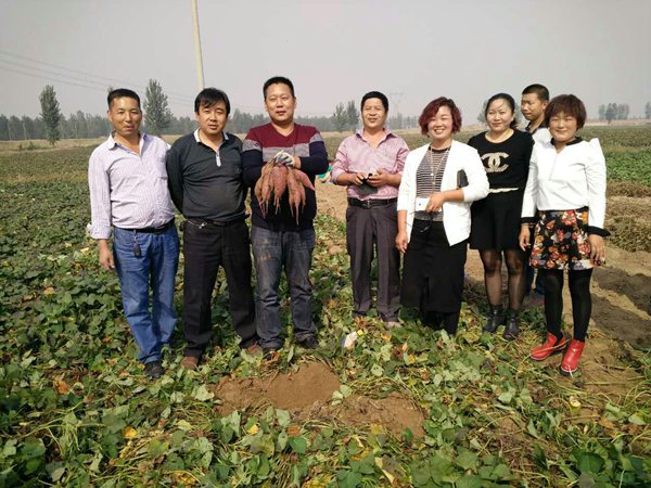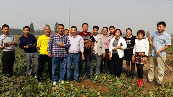 2015年10月5日下午,應(yīng)石家莊新樂市木村張紅江邀請,來自鄭州、商丘、內(nèi)黃、鶴壁、開封、石家莊、藁城等地20余人,參加禾下土提供的脫毒紫菁2號商品紅薯觀摩會。
