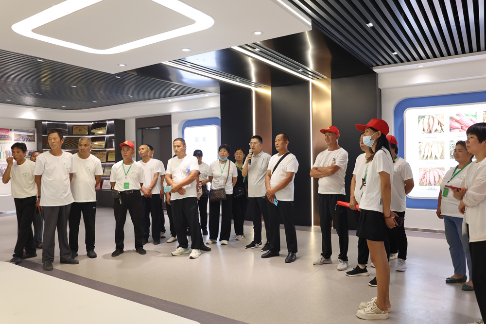 2023年8月23日,曲周縣農(nóng)業(yè)農(nóng)村局組織高素質(zhì)培育學(xué)員50余人到邯鄲市禾下土種業(yè)有限公司參觀學(xué)習(xí)。在禾下土培訓(xùn)中心,技術(shù)專家通過實(shí)地案例詳細(xì)講解了甘薯施肥、控旺、灌溉等高產(chǎn)高效栽培技術(shù)要點(diǎn),為學(xué)員們開展優(yōu)質(zhì)、高產(chǎn)的甘薯種植提供了寶貴經(jīng)驗(yàn)。在甘薯綜合展廳,學(xué)員們充分了解了禾下土在甘薯技術(shù)創(chuàng)新、育種、育苗、全產(chǎn)業(yè)鏈服務(wù)等方面的創(chuàng)新發(fā)展情況。