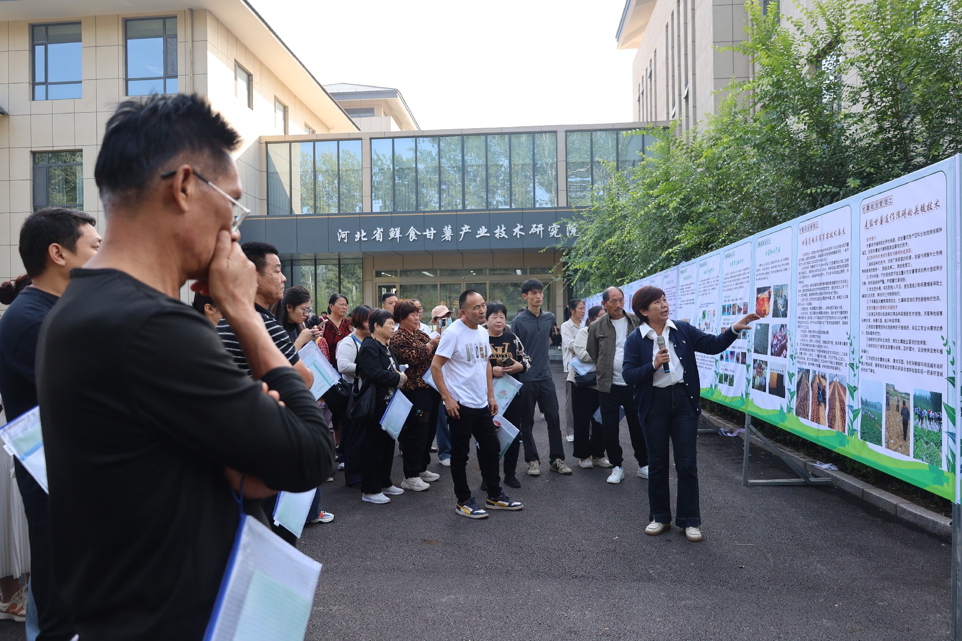 活動開篇環(huán)節(jié)聚焦科普實效,以直觀體驗開啟知識傳播?;顒右潦?,參會人員集體參觀甘薯產(chǎn)業(yè)技術(shù)科普展板,展板內(nèi)容系統(tǒng)涵蓋甘薯的生物特性、產(chǎn)業(yè)特色、栽培儲藏管理技術(shù)及病蟲害防控方法等核心知識。現(xiàn)場專家圍繞展板內(nèi)容進(jìn)行細(xì)致講解,結(jié)合產(chǎn)業(yè)實際案例拆解技術(shù)要點,讓參會者在直觀觀察與專業(yè)解讀中,快速建立對甘薯產(chǎn)業(yè)關(guān)鍵技術(shù)的初步認(rèn)知,為后續(xù)深入交流與技術(shù)推廣奠定堅實基礎(chǔ)。