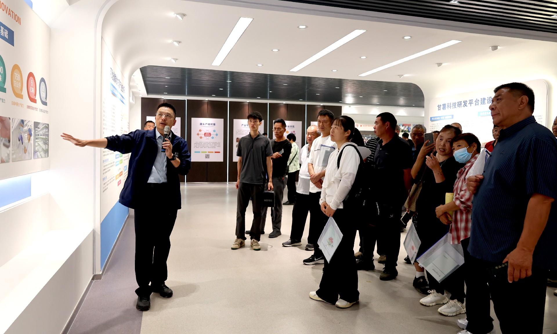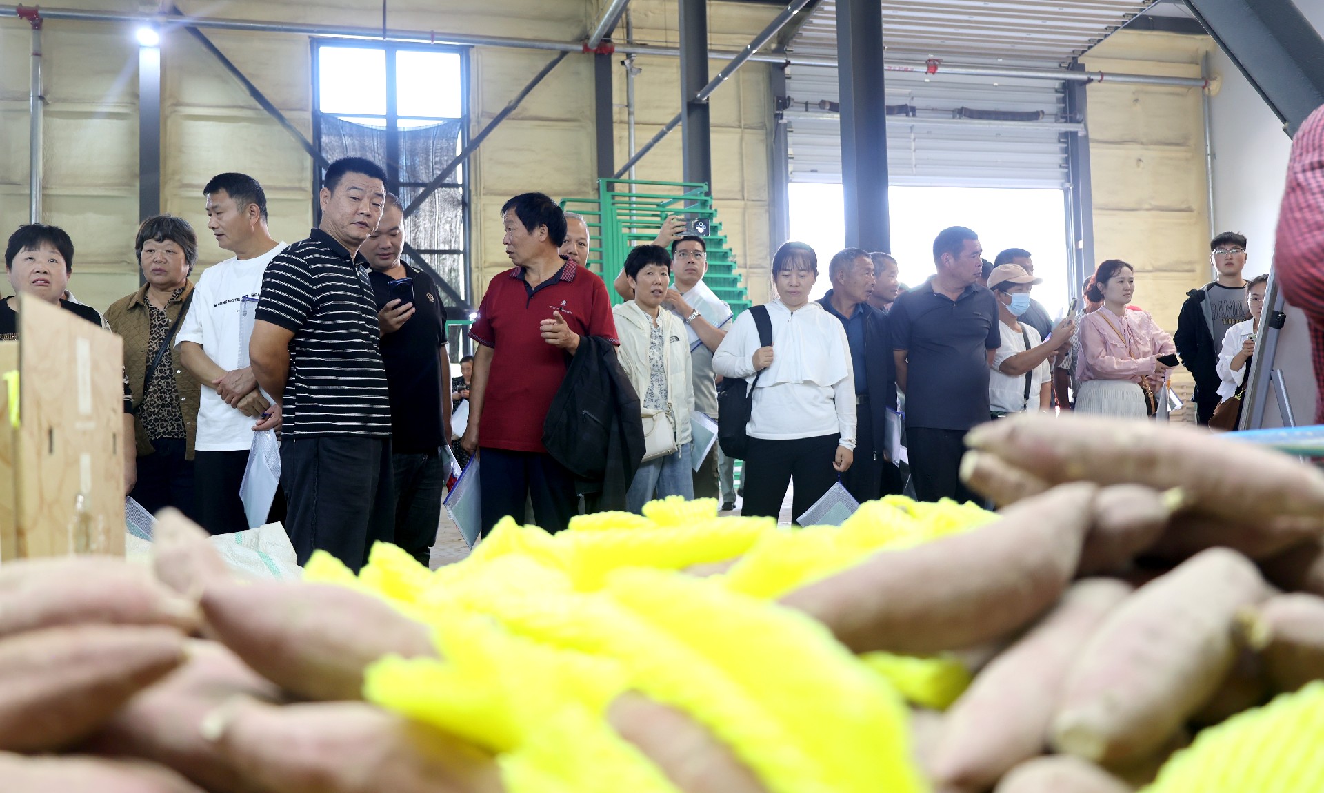 參觀公司展廳,進(jìn)一步了解甘薯種業(yè)的發(fā)展現(xiàn)狀,禾下土現(xiàn)行的脫毒甘薯二級育苗體系,較國家標(biāo)準(zhǔn)的四級育苗標(biāo)準(zhǔn)足足提升兩級,大幅縮短育苗周期、降低培育成本。公司年產(chǎn)甘薯組培苗1.2億株、脫毒種薯1500余萬公斤、脫毒種苗10余億株,銷售覆蓋全國29個省區(qū)市。同時依托億甲寧一站式服務(wù)平臺,為農(nóng)業(yè)企業(yè)、種地大戶、家庭農(nóng)場等新型農(nóng)業(yè)經(jīng)營主體提供全方位指導(dǎo),直接帶動9251戶農(nóng)民增產(chǎn)增收。在智能化倉儲中心,眾人聚焦于現(xiàn)場的甘薯品質(zhì)檢測與等級分揀環(huán)節(jié),從表皮完整性、形狀規(guī)整度等方面對甘薯進(jìn)行分揀,既保證了每一批次甘薯的品質(zhì)一致性,也為不同市場需求提供了精準(zhǔn)的產(chǎn)品匹配。