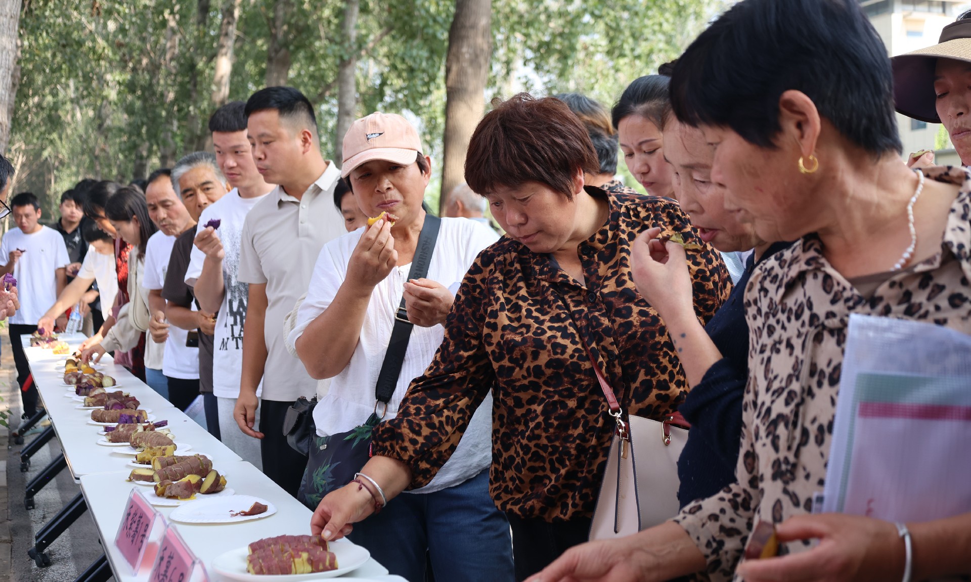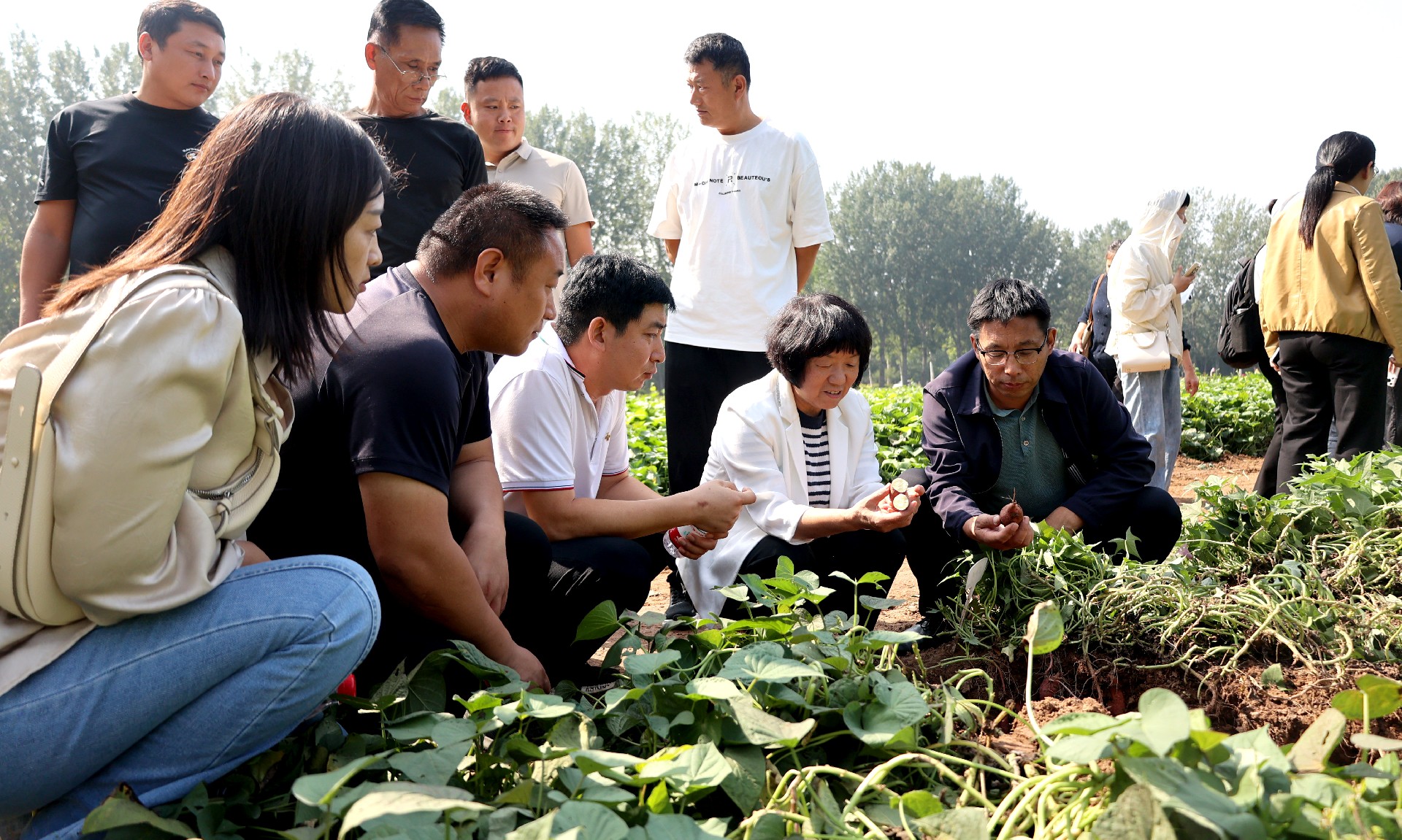 理論的深度,需由實踐的腳步丈量。在專題會議的知識分享環(huán)節(jié)圓滿落幕后,參會眾人前往甘薯新品種試驗基地,大家俯身田間,近距離觀察不同甘薯新品種的生長特性從藤蔓、葉片到土壤下甘薯的狀態(tài),直觀感受品種差異帶來的生長表現(xiàn);同時,圍繞各品類甘薯的核心優(yōu)勢展開詳細(xì)介紹,針對淀粉含量、口感甜度、抗逆性等關(guān)鍵品種特點逐一解析,明確不同甘薯品種的核心競爭力,讓農(nóng)戶更加清晰掌握其對應(yīng)的市場定位與應(yīng)用方向。隨后,移步至甘薯品鑒區(qū),擺放著70余個甘薯品種,供大家現(xiàn)場品嘗體驗,直觀感受到“好品種”背后的“好品質(zhì)”。在甘薯機(jī)械化高效采收演示現(xiàn)場,觀摩農(nóng)機(jī)作業(yè)全過程,切實感受科技為農(nóng)業(yè)生產(chǎn)帶來的便捷與高效,進(jìn)一步加深了對甘薯產(chǎn)業(yè)現(xiàn)代化發(fā)展的認(rèn)知。