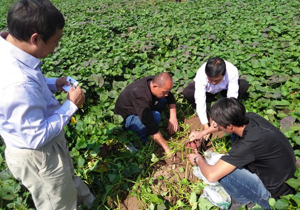 鞏志忠院長一行詳細(xì)了解邯鄲市禾下土種業(yè)有限公司在脫毒組培、脫毒種薯生產(chǎn)、脫毒種苗繁育等方面的創(chuàng)新發(fā)展情況,圍繞種薯、種苗、商品薯在生產(chǎn)過程中的主要技術(shù)環(huán)節(jié)進(jìn)行了深入交流。在禾下土脫毒甘薯種薯田,齊俊生博士對"維大利"植物免疫激活蛋白在甘薯上不同濃度噴施、占根的對照表現(xiàn)進(jìn)行現(xiàn)場抽檢,詳細(xì)記錄各種對照試驗數(shù)據(jù),綜合分析維多利對甘薯產(chǎn)量、品質(zhì)、抗病性、控旺促長等方面研究試驗。