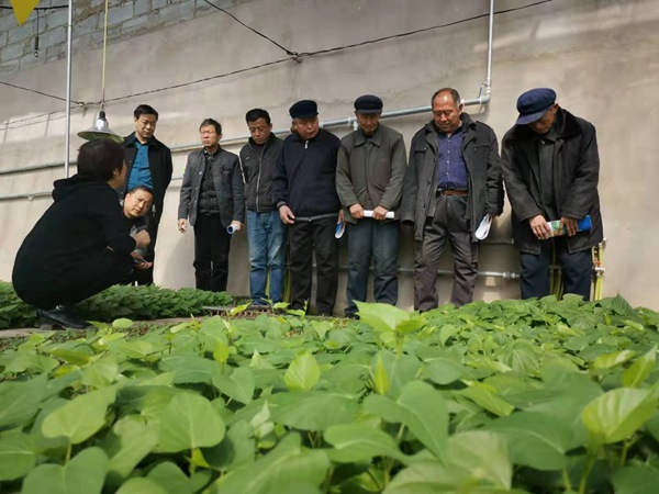 2019年3月6日,邯鄲大名甘薯種植大戶一行10余人到禾下土脫毒甘薯種薯種苗基地現(xiàn)場(chǎng)參觀考察,邯鄲市禾下土種業(yè)有限公司基地負(fù)責(zé)人崔勇平陪同參觀??疾靾F(tuán)先后參觀了禾下土試管苗擴(kuò)繁基地和600畝標(biāo)準(zhǔn)化脫毒種苗基地,詳細(xì)了解禾下土在科研育種、脫毒組培、規(guī)模繁育、科技成果轉(zhuǎn)換等方面的生產(chǎn)經(jīng)營(yíng)情況,并圍繞脫毒甘薯種苗繁育、技術(shù)等方面進(jìn)行了深入溝通。