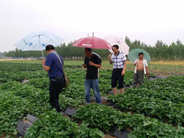 2017年6月22日,河北省農(nóng)科院糧油作物研究所甘薯室主任、京津冀甘薯聯(lián)合鑒定試驗(yàn)負(fù)責(zé)人馬志民冒雨到禾下土甘薯新品種試驗(yàn)基地調(diào)研,邯鄲市禾下土種業(yè)有限公司總經(jīng)理崔伏喜陪同參觀。