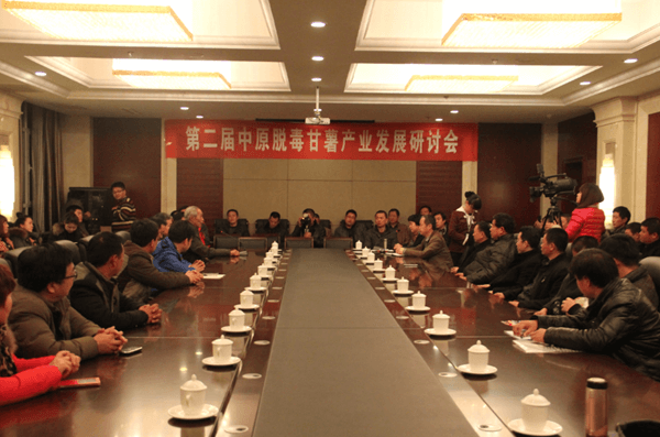 2015年1月7日晚,在磁縣溢泉湖嵩景樓賓館,第二屆中原脫毒甘薯產(chǎn)業(yè)發(fā)展研討會(huì)——分會(huì)場(chǎng),甘薯屆育種育苗、機(jī)械、加工、銷售、肥料、化控、種植等110人相聚一起,由邯鄲市禾下土種業(yè)有限公司董事長(zhǎng)主持,討論主題為"新技術(shù)引領(lǐng)甘薯產(chǎn)業(yè)發(fā)展"話題,會(huì)議圍繞育苗技術(shù)、脫毒技術(shù)、控旺技術(shù)和新肥料、新機(jī)械、新產(chǎn)品加工、新儲(chǔ)藏技術(shù)等技術(shù)變革進(jìn)行了研討。