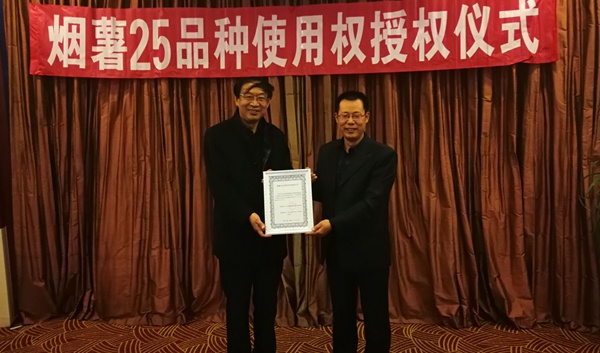 在會(huì)上,邯鄲市禾下土種業(yè)有限公司與授權(quán)單位山東省煙臺(tái)市農(nóng)科院簽署了煙薯25品種使用權(quán)授權(quán)合同。