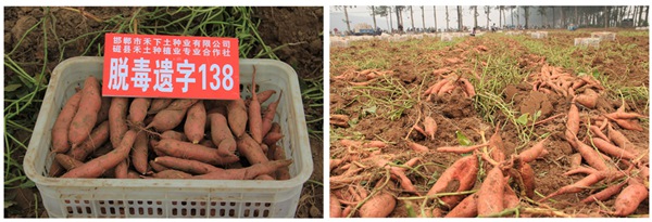 禾下土脫毒紅薯高產示范基地占地10000畝,以脫毒紅薯新品種、新技術試驗示范為核心,先后完成高起壟栽培、滴灌、機械化收獲等20余項技術成果轉換。通過組織開展試驗示范、現(xiàn)場觀摩、技術指導、集中培訓等方式,完輻射新增脫毒紅薯種植面積4萬畝,實現(xiàn)紅薯單產提高30%至60%,有效帶動地方紅薯產業(yè)的健康發(fā)展。