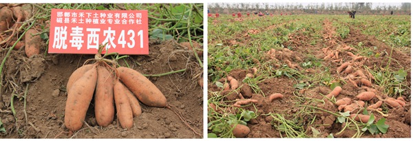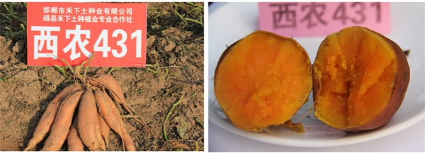 該品種蔓長 1-1.5 米,基部分枝多,蔓、葉、葉脈、葉柄全是淺綠色,葉心臟形。結(jié)薯集中。薯塊上紡錘型。薯皮橙黃、肉桔紅、薯干鮮紅,口感極好,香味濃、甜、面沙,出干率 32-35% 。是烤紅薯、加工薯脯、罐頭、鮮薯干、飴糖等保健食品的好原料???jié)碀n,耐低溫,高抗黑斑病,耐貯運(yùn)。生長勢(shì)好,抗病性強(qiáng),高產(chǎn)穩(wěn)產(chǎn)。