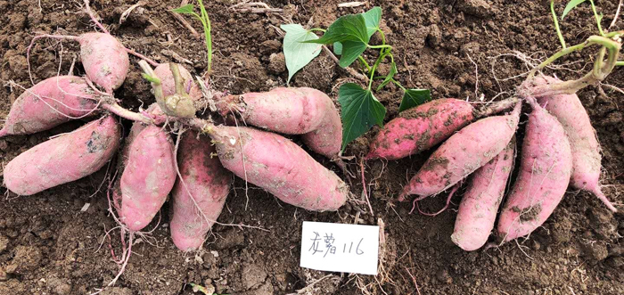 龍薯116龍薯116(原系號11-6)是福建省龍巖市農(nóng)業(yè)科學(xué)研究所于2012年以龍薯9號放任授粉的后代中育成。該品種具有綜合性狀好,薯干與淀粉產(chǎn)量高,食味品質(zhì)粉、香、甜,中抗甘薯蔓割病,是一個(gè)理想的食飼兼用型品種。特征特性:短蔓株型半直立,單株分枝數(shù)較多,成葉心形帶齒,葉片大小中等,頂葉、成葉、莖、葉柄、柄基、葉主脈、葉側(cè)脈、脈基色均為綠色;蔓粗中等;單株結(jié)薯5-8條,薯形長紡,結(jié)薯集中,薯塊大小較均勻,且光滑美觀。薯皮紅色,薯肉淡黃色。干物率33.66%,比對照"金山57"(下同)高7.65個(gè)百分點(diǎn);淀粉率22.92%,比對照高6.65個(gè)百分點(diǎn);食味評分83.75 ,比對照高3.5個(gè)百分點(diǎn);外觀(薯形)評分83.02 ,比對照高3.02個(gè)百分點(diǎn)。中抗甘薯蔓割病,耐肥,較耐干旱。發(fā)芽早,長苗較快。產(chǎn)量表現(xiàn):2017年與2018年...