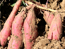 蘇薯8號① 特征特性:蘇薯8號頂葉綠,葉脈紫,葉呈深復(fù)缺刻形。蔓長0.5~0.9m為短蔓型甘薯品種,半直立型,分枝多,單株分枝10個以上。薯皮光滑,呈紫紅色,薯肉橘紅,結(jié)薯早而集中,薯塊短紡錘形,大中薯率90%以上,商品性好。每100g薯塊含維生素C19.62mg、β-胡蘿卜素1.56mg,可溶性糖含量占薯塊的6.9%。纖維少,肉質(zhì)細(xì)、味甜,適宜蒸煮、烘烤及食品加工。徐州甘薯研究中心及江蘇省農(nóng)業(yè)科學(xué)院經(jīng)兩年抗病性鑒定,結(jié)果表明,蘇薯8號高抗黑斑病和甘薯莖線蟲病,抗葉片萎蔫能力及抗旱能力均較強(qiáng)。② 品種來源:蘇薯8號是由江蘇省南京市農(nóng)科所以蘇薯4號為母本、蘇薯1號為父本雜交選育而成的新一代甘薯新品種。③ 產(chǎn)量表現(xiàn):蘇薯8號結(jié)薯早,薯塊膨大迅速,栽后95—100天,鮮薯平均重0.8公斤/株。10月底收獲,鮮薯產(chǎn)量可達(dá)3500—4500公斤...