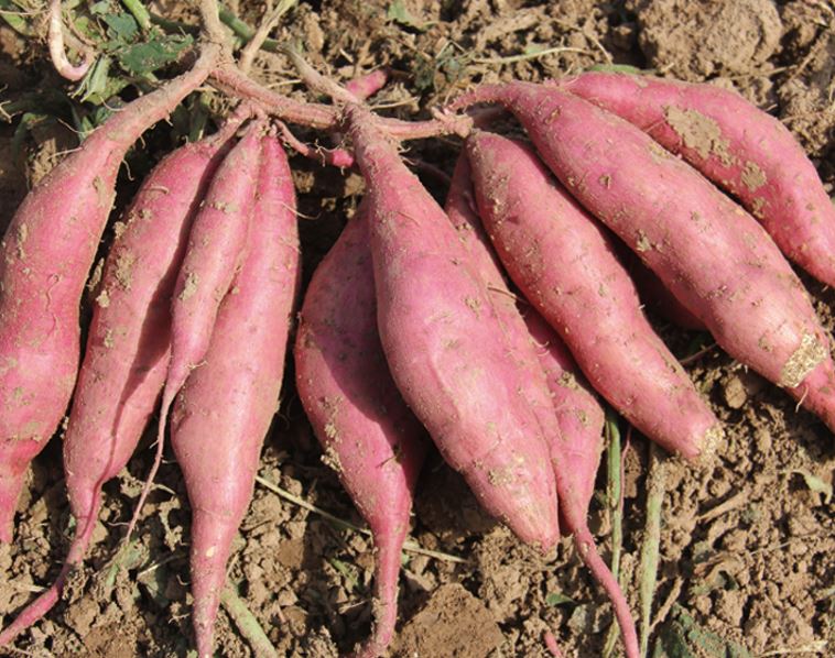 ① 特征特性:該品種赭紅皮桔紅肉,長紡錘形,蒸煮、生食口感好,許多地方已進(jìn)行精包裝進(jìn)超市,市民也把它作為一種禮品贈送親朋好友。徐薯34比一般的甘薯品種早熟20~30天,能早收早上市,彌補(bǔ)市場空缺,經(jīng)濟(jì)效益高,特別適宜城郊地區(qū)發(fā)展。② 品種來源:該品種是由徐州甘薯研究中心于以華北166為母本,群力2號為父本雜交選育而成的,原系號81-29-34,是一個優(yōu)質(zhì)、早熟的食用品種。③ 產(chǎn)量表現(xiàn):脫毒徐薯34比普通徐薯34增產(chǎn)增產(chǎn)60~104%,一般春薯畝產(chǎn)量2000公斤,夏薯畝產(chǎn)量1500公斤。④ 栽培要點:栽前浸苗,適宜密度每畝3600-4000株。適當(dāng)早栽,結(jié)合覆膜可提前上市。其它管理措施同一般大田。?、?市場前景:該品種作為食用型和淀粉型兼用型甘薯新品種,有著極其優(yōu)良的品質(zhì)以及極高的產(chǎn)量,市場需求極大!
