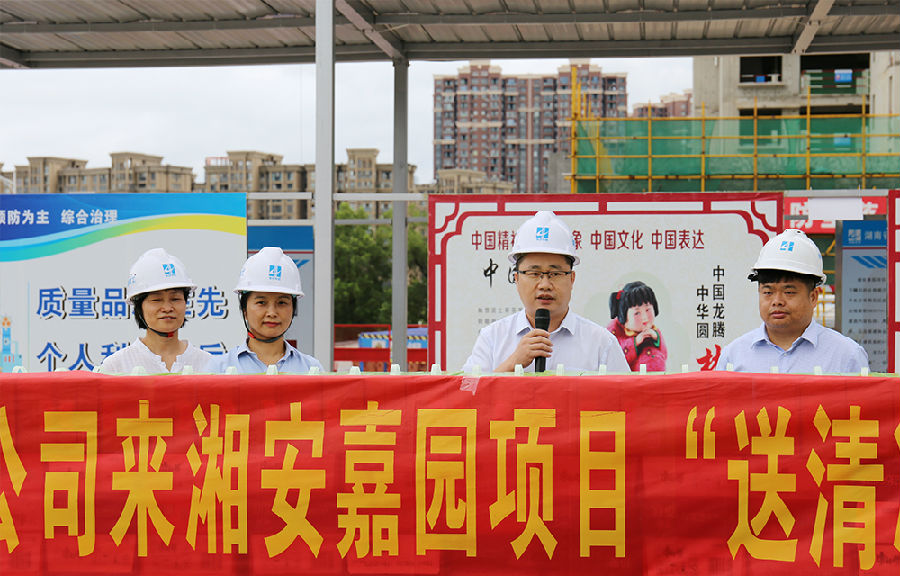 炎炎夏日送清涼,絲絲關(guān)愛入心田。近段時間連日高溫,驕陽似火,酷暑難耐,正值湘安嘉園項目“大干快上100天 全面奪取雙勝利”百日會戰(zhàn)時期。8月25日上午,公司總經(jīng)理楊建一行到項目開展“送清涼”活動,表達對公司總部基地建設(shè)的關(guān)心和支持。