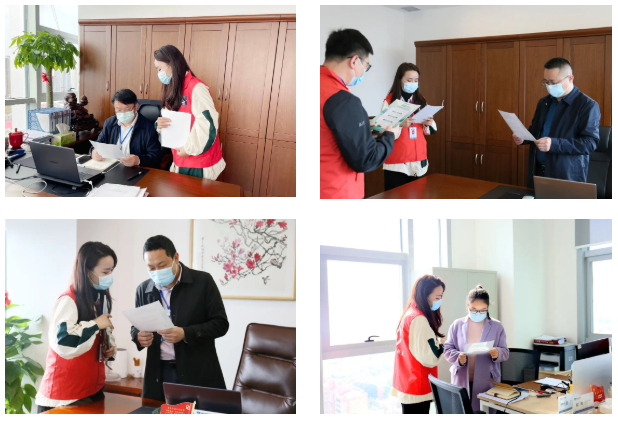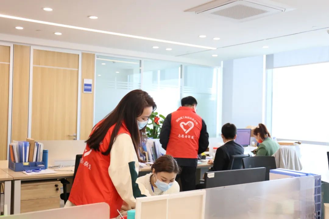 他們是疫情防控的“巡查員”。近段時(shí)間,公司各辦公區(qū)不時(shí)閃現(xiàn)“紅馬甲”的身影,十名青年志愿者自覺排班值守,每天不定時(shí)到各個(gè)辦公室、出入口進(jìn)行巡查,確保各辦公室備用口罩、酒精等防疫物品配備到位,及時(shí)提醒員工佩戴好口罩。