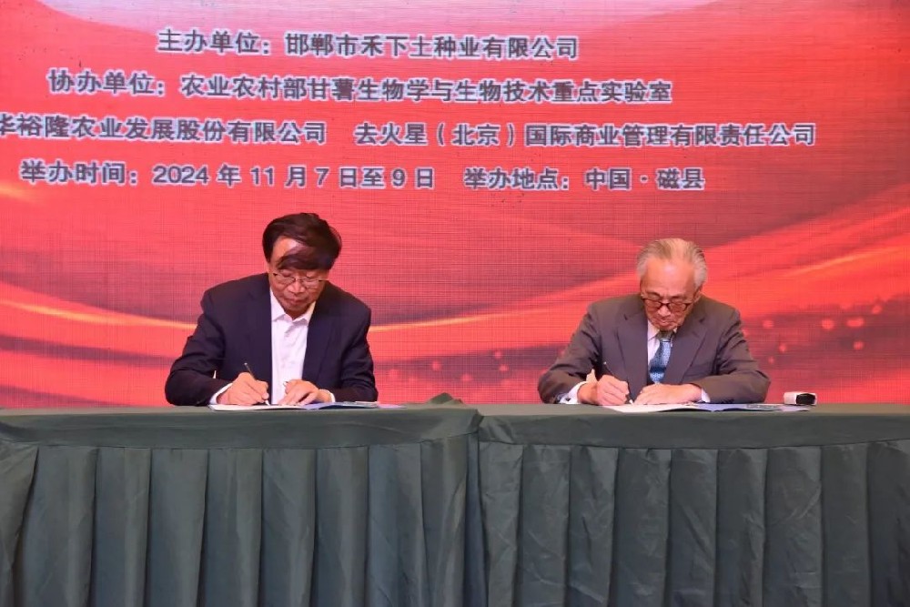 2024年11月8日,在第十二屆東亞甘薯國際研討會上,邯鄲市禾下土種業(yè)有限公司與東亞(日本)紅薯友好協(xié)會正式簽訂《友好合作協(xié)議》。雙方將依托甘薯這一核心紐帶,建立友好合作關(guān)系,充分發(fā)揮各自在甘薯產(chǎn)業(yè)領(lǐng)域的核心優(yōu)勢,攜手在甘薯育種、甘薯良繁、優(yōu)質(zhì)商品薯、甘薯加工等多領(lǐng)域開展合作。這次簽約,標(biāo)志著國際甘薯產(chǎn)業(yè)合作邁入新階段,將進一步加深中日甘薯企業(yè)間的緊密聯(lián)系,為甘薯企業(yè)的成長壯大注入動力,攜手推動甘薯產(chǎn)業(yè)邁向更加繁榮的未來!