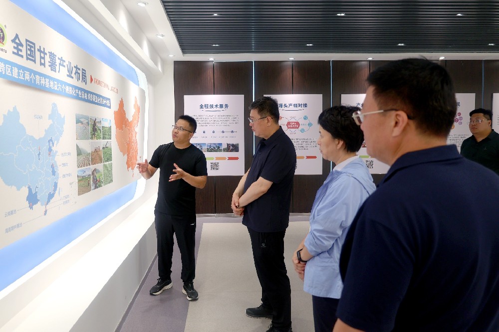 2025年8月1日,中央廣播電視總臺(tái)河北總站黨委書記、站長(zhǎng)劉濤,中央廣播電視總臺(tái)河北總站辦公室副主任孟曉光等一行到邯鄲市禾下土種業(yè)有限公司調(diào)研鄉(xiāng)村振興及特色產(chǎn)業(yè)集群發(fā)展,磁縣縣委常委、宣傳部部長(zhǎng)段海峰,邯鄲市禾下土種業(yè)有限公司董事長(zhǎng)王玉文陪同調(diào)研。調(diào)研一行首先參觀了企業(yè)展廳,了解了禾下土種業(yè)的發(fā)展歷程、核心業(yè)務(wù)及取得的成就。隨后,來(lái)到甘薯新品種試驗(yàn)基地,詳細(xì)了解了各類甘薯新品種的種植情況、生長(zhǎng)特性及市場(chǎng)前景。