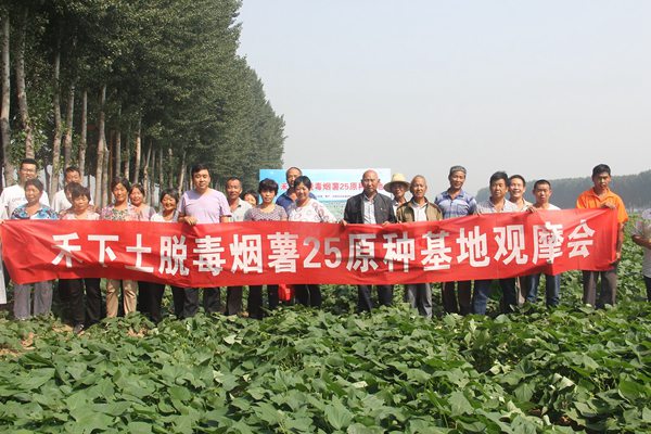 2017年9月12日,邯鄲市禾下土種業(yè)有限公司脫毒煙薯25原種基地觀摩會(huì)在磁縣召開,來自全國(guó)的煙薯25種植農(nóng)戶30余人到基地參觀。禾下土公司崔永平、栗維杰經(jīng)理帶領(lǐng)大家參觀了脫毒甘薯組培中心、甘薯貯藏窖、標(biāo)準(zhǔn)育苗大棚和原種基地,在培訓(xùn)室進(jìn)行了交流溝通。大家對(duì)于禾下土脫毒煙薯25原種長(zhǎng)勢(shì)表現(xiàn)給予稱贊,為種植煙薯25實(shí)現(xiàn)高產(chǎn)、優(yōu)質(zhì)、高商品率和高效益充滿信心。邯鄲市禾下土種業(yè)有限公司是煙臺(tái)農(nóng)科院"煙薯25"品種使用權(quán)許可單位,專業(yè)脫毒煙薯25原種、原種苗生產(chǎn),歡迎全國(guó)甘薯專業(yè)種植農(nóng)戶到禾下土脫毒甘薯種苗基地考察!