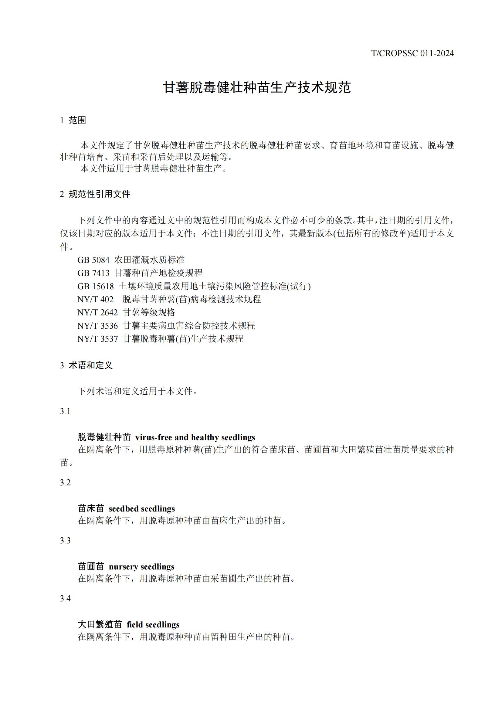 《甘薯脫毒健壯種苗生產(chǎn)技術(shù)規(guī)范》全文發(fā)布