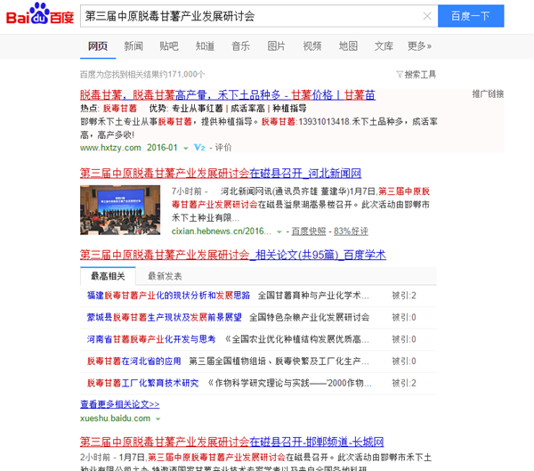 2016年1月6日-7日,由邯鄲市禾下土種業(yè)有限公司主辦的第三屆中原脫毒甘薯產(chǎn)業(yè)發(fā)展研討會在河北磁縣溢泉湖度假村盛大召開,來自全國各地的甘薯專家、育苗企業(yè)、種植大戶、收購商、深加工企業(yè)、農(nóng)機企業(yè)、農(nóng)資企業(yè)代表等180余人相聚磁縣,共同探討中國甘薯產(chǎn)業(yè)的發(fā)展與未來。會議得到各大媒體的權(quán)威關(guān)注。各大媒體競相報道關(guān)注河北新聞網(wǎng)第一時間發(fā)布會議信息長城網(wǎng)聚焦關(guān)注邯鄲日報聚焦關(guān)注中國地瓜網(wǎng)聚焦關(guān)注