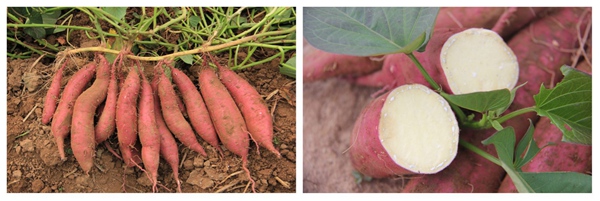 該品種結(jié)薯早、前期膨大塊,可較常規(guī)品種提早1個月左右收獲上市,薯塊商品性好,可使種植效益顯著提高。據(jù)薯農(nóng)、市場一致反映:秦薯5號好吃、好賣,熟食品質(zhì)優(yōu)良,是理想的高效食用"市場薯",也可作為"迷你紅薯"或淀粉兼用型品種利用。